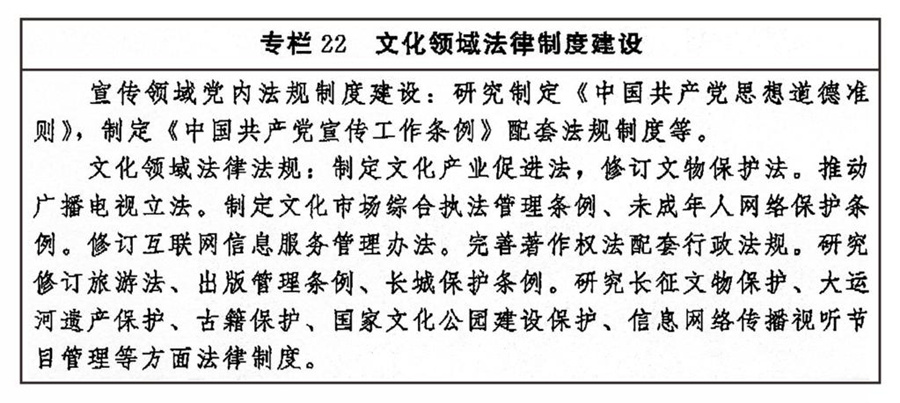 ——中國特色社會主義文化制度更加完善,文化法律法規(guī)體系和政策體系更加健全,文化治理效能進一步提升。