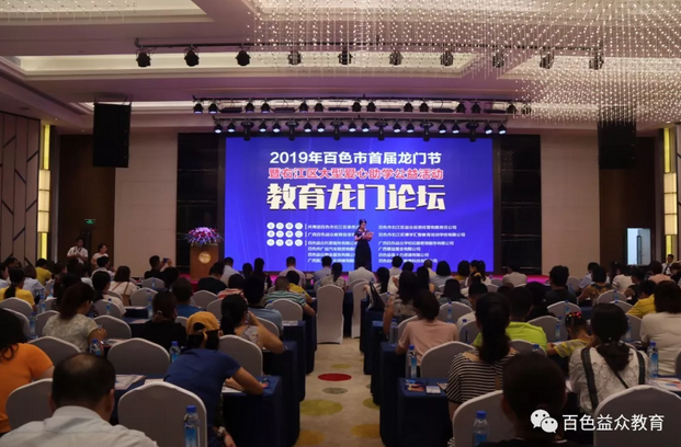 2019年6月16日下午,百色市首屆龍門節(jié)暨右江區(qū)大型愛心助學第一場公益活動—教育龍門論壇的舉行,拉開了百色市首屆龍門節(jié)公益活動的帷幕。本次論壇由共青團百色市右江區(qū)委員會、百色市右江區(qū)益眾投資經(jīng)營有限責任公司聯(lián)合主辦,百色市右江區(qū)博學匯智教育培訓學校有限公司、廣西百色益眾教育投資有限公司聯(lián)合承辦。教育無小事,論壇也得到了各級領導的極大重視。右江區(qū)區(qū)委常委、組織部部長張彩昊,右江區(qū)人民政府辦公室副主任譚再規(guī),右江區(qū)教育局副局長蔣傳剛,共青團百色市右江區(qū)委員會副書記姚賢玉,百色市右江區(qū)益眾投資經(jīng)營有限責任公司總經(jīng)理趙家臣參加了本次論壇。參加本次論壇的還有右江區(qū)10所小學的校長、學校代表。論壇得到了家長熱烈歡迎,到場家長約500人。