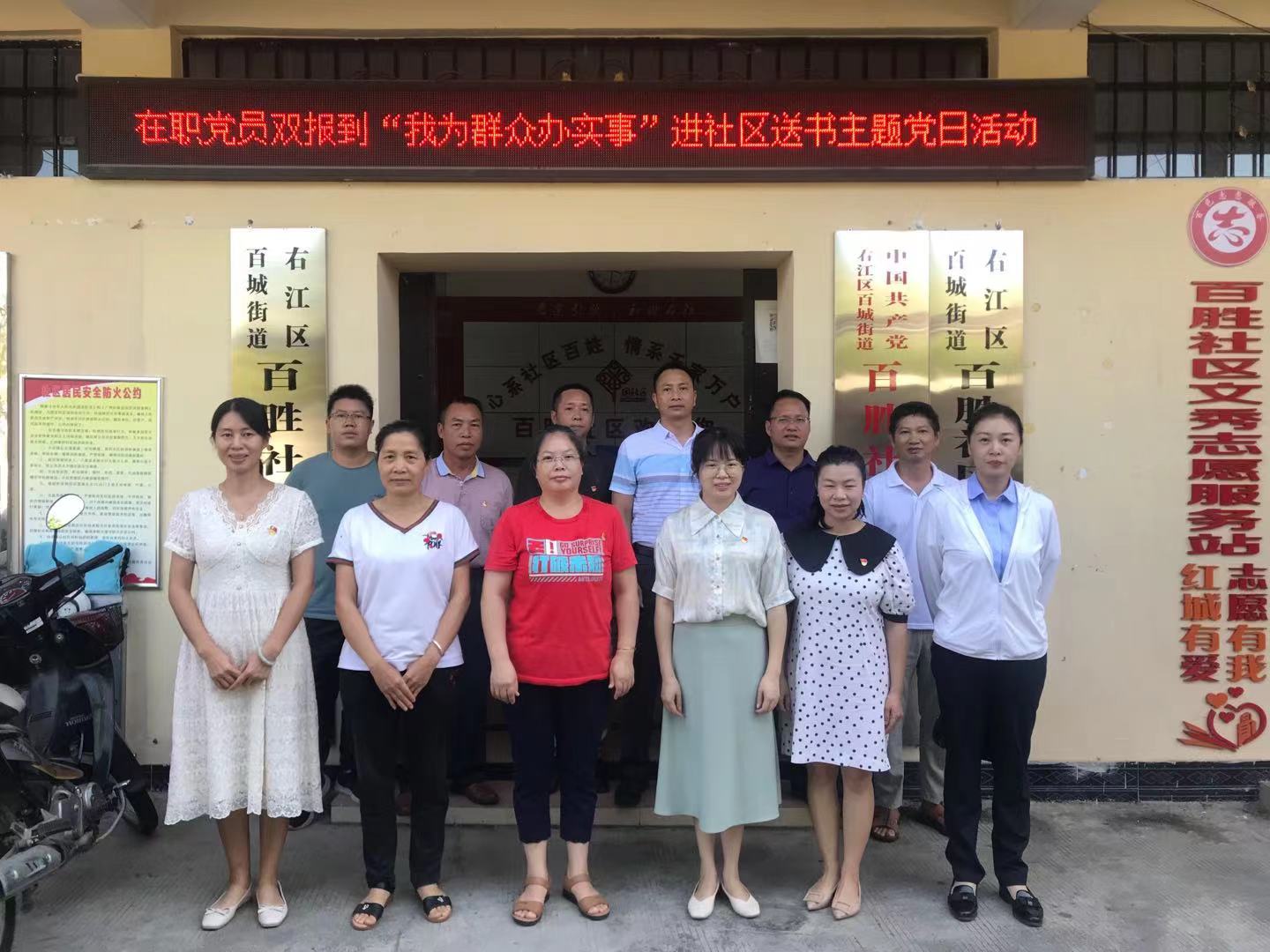 近日,益眾公司黨支部圍繞“學(xué)黨史、悟思想、辦實事、開新局”的目標(biāo)要求,積極參與百勝社區(qū)開展“我為群眾辦實事”進(jìn)社區(qū)送書主題黨日活動,以學(xué)促干,將黨史學(xué)習(xí)教育與街道社區(qū)共建互聯(lián)。