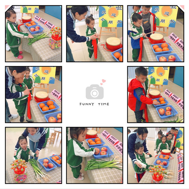 ????????上午7時(shí)40分,孩子們?cè)诩议L(zhǎng)的陪同下來(lái)到幼兒園大門(mén)口,進(jìn)園時(shí)敲響飽含濃濃祝福的小鼓,用小手觸摸大蔥、蘋(píng)果、桔子、棒棒糖,傳遞著益眾幼兒園對(duì)孩子濃濃的愛(ài)意和深深的祝福。