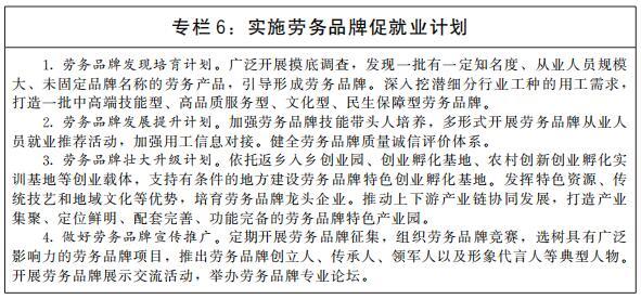 穩(wěn)定和擴大農村勞動力外出就業(yè)規(guī)模。廣泛開展區(qū)域間勞務協作,健全勞務輸入集中區(qū)域與勞務輸出省份對接協調機制,加強勞動力跨區(qū)域精準對接,發(fā)展勞務組織和經紀人,有序組織輸出地農村勞動力外出務工。培育一批有地域特色、行業(yè)特征、技能特點,帶動農村勞動力就業(yè)效果好的勞務品牌。實施農民工素質提升工程,推進新生代農民工職業(yè)技能提升計劃。創(chuàng)建一批農村勞動力轉移就業(yè)示范縣。