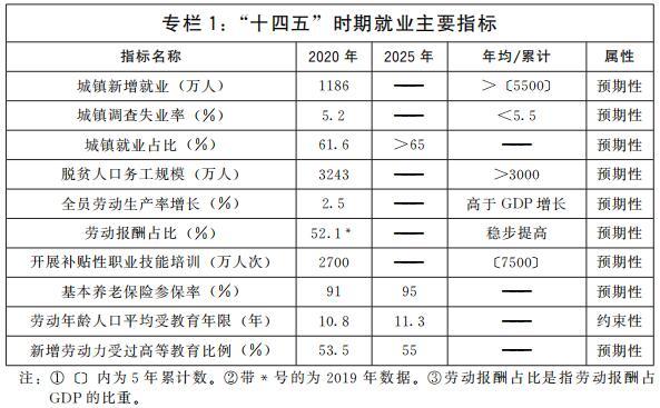 ——就業(yè)形勢總體平穩(wěn)。城鎮(zhèn)新增就業(yè)5500萬人以上,努力實現更大規(guī)模,城鎮(zhèn)調查失業(yè)率控制在5.5%以內,重點群體就業(yè)保持穩(wěn)定。城鄉(xiāng)、區(qū)域就業(yè)機會差距逐步縮小,勞動力市場供求基本平衡。