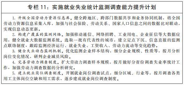 完善就業(yè)失業(yè)統計監(jiān)測調查體系。加快構建系統完備、立體化的就業(yè)失業(yè)監(jiān)測網絡,實現勞動力市場、企業(yè)用工主體和勞動者個體全覆蓋,全面反映就業(yè)增長、失業(yè)水平、市場供求狀況。完善就業(yè)統計指標體系和調查統計方法,探索進行就業(yè)質量、就業(yè)穩(wěn)定性等方面的分析。推進大數據在就業(yè)統計監(jiān)測領域的應用。