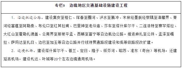 服務(wù)沿邊城鎮(zhèn)體系建設(shè),以公路、機場為重點,大力改善邊境地區(qū)交通出行條件,提升邊境城鎮(zhèn)人口集聚能力。統(tǒng)籌推進邊境地區(qū)國省干線公路、農(nóng)村公路等建設(shè),全面完善國道干線主骨架,推進沿邊公路并行線建設(shè)和低等級公路提質(zhì)改造,加快抵邊公路建設(shè),盡快形成層次清晰、結(jié)構(gòu)合理的沿邊公路網(wǎng)。穩(wěn)步推進邊境地區(qū)機場建設(shè),構(gòu)建多層級航空網(wǎng),擴大航空運輸服務(wù)覆蓋面。補強同江、二連浩特、阿拉山口、霍爾果斯、瑞麗、磨憨等口岸后方鐵路通道能力。加強抵邊自然村郵政設(shè)施建設(shè),實現(xiàn)郵政服務(wù)普遍覆蓋。