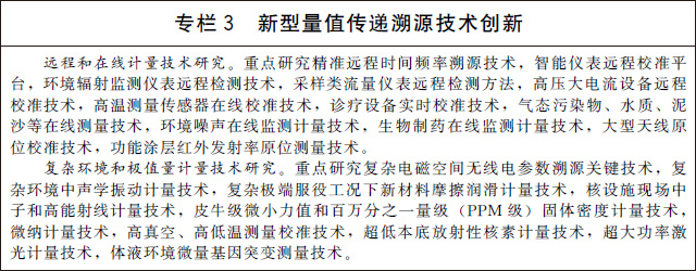 (六)開展新型量值傳遞溯源技術(shù)研究。針對復(fù)雜環(huán)境、實(shí)時工況環(huán)境和極端環(huán)境的計量需求,研究新型量值傳遞溯源方法,解決綜合參量的準(zhǔn)確測量難題。建立扁平化場景高適應(yīng)性的量值溯源體系。研究數(shù)字化模擬測量、工業(yè)物聯(lián)、跨尺度測量、復(fù)雜系統(tǒng)綜合計量等關(guān)鍵技術(shù)。加強(qiáng)國家標(biāo)準(zhǔn)物質(zhì)在制備、定值、保存、溯源評價及量值傳遞應(yīng)用新模式等方面的全壽命周期、系統(tǒng)性研究與評價。加快推進(jìn)計量基準(zhǔn)、計量標(biāo)準(zhǔn)及標(biāo)準(zhǔn)物質(zhì)智能化、網(wǎng)絡(luò)化技術(shù)的研究和應(yīng)用。