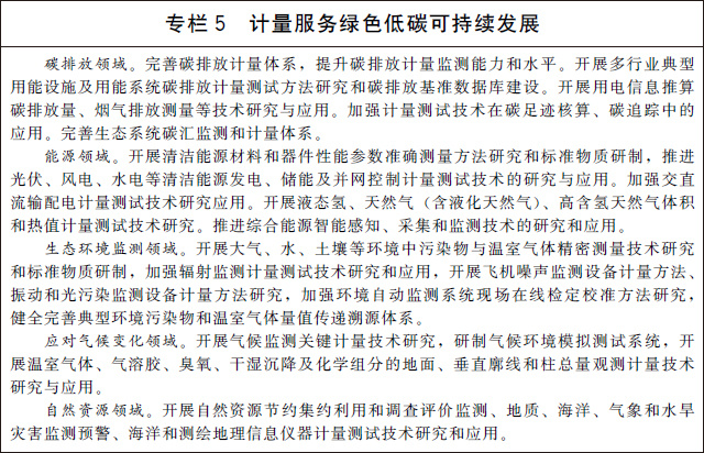 (十四)支撐碳達(dá)峰碳中和目標(biāo)實(shí)現(xiàn)。完善溫室氣體排放計量監(jiān)測體系,加強(qiáng)碳排放關(guān)鍵計量測試技術(shù)研究和應(yīng)用,健全碳計量標(biāo)準(zhǔn)裝置,為溫室氣體排放可測量、可報告、可核查提供計量支撐。建立碳排放計量審查制度,強(qiáng)化重點(diǎn)排放單位的碳計量要求。在城市和園區(qū)開展低碳計量試點(diǎn)。建立完善資源環(huán)境計量體系,建設(shè)一批國家能源、水文水資源和環(huán)境計量中心,推進(jìn)能耗、水資源、環(huán)境監(jiān)測系統(tǒng)建設(shè),加強(qiáng)能源資源和環(huán)境計量數(shù)據(jù)分析挖掘和利用。加快推進(jìn)能源資源計量服務(wù)示范工程建設(shè),引導(dǎo)和培育能源資源和環(huán)境計量服務(wù)市場。
