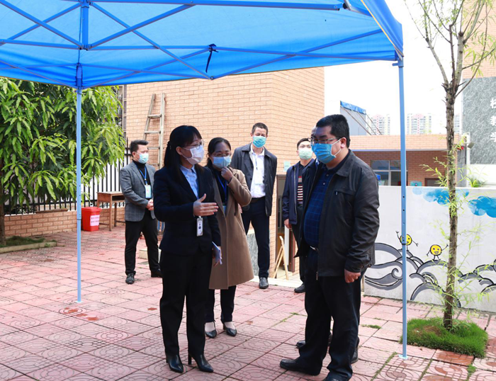 4月3日下午,右江區(qū)政協(xié)主席周文任到我公司下屬益眾托管公司第十小學(xué)校區(qū)檢查開學(xué)前疫情防控的準(zhǔn)備工作情況。右江區(qū)委常委、宣傳部部長、副區(qū)長王世凡,區(qū)政協(xié)辦公室主任王天躍、區(qū)教育局局長蘇祖勝、第十小學(xué)及益眾公司相關(guān)負責(zé)人陪同檢查。